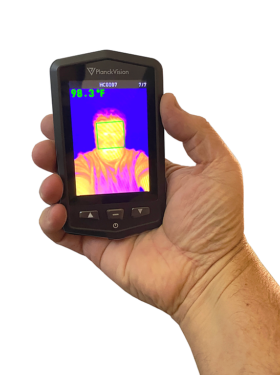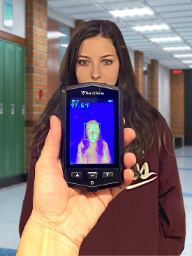 This battery powered infrared camera is designed to screen individuals for Elevated Body Temperature (EBT). The ThermaCheck LT camera has a self-contained monitor for displaying real-time thermal images. Temperature measurements are automatically taken from the scene of the camera and the operator is alerted when an individual’s temperature is above a user defined threshold. Its versatile design may be used as a handheld device or mounted on a tripod for handsfree operation.
