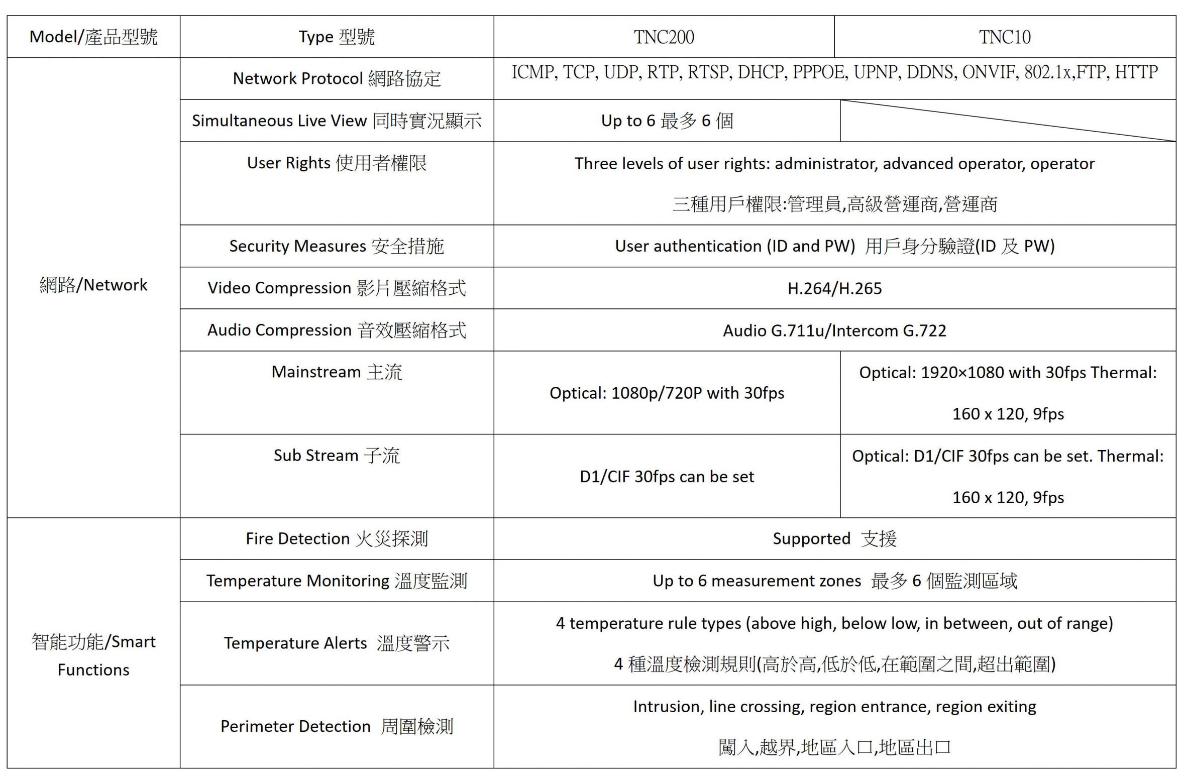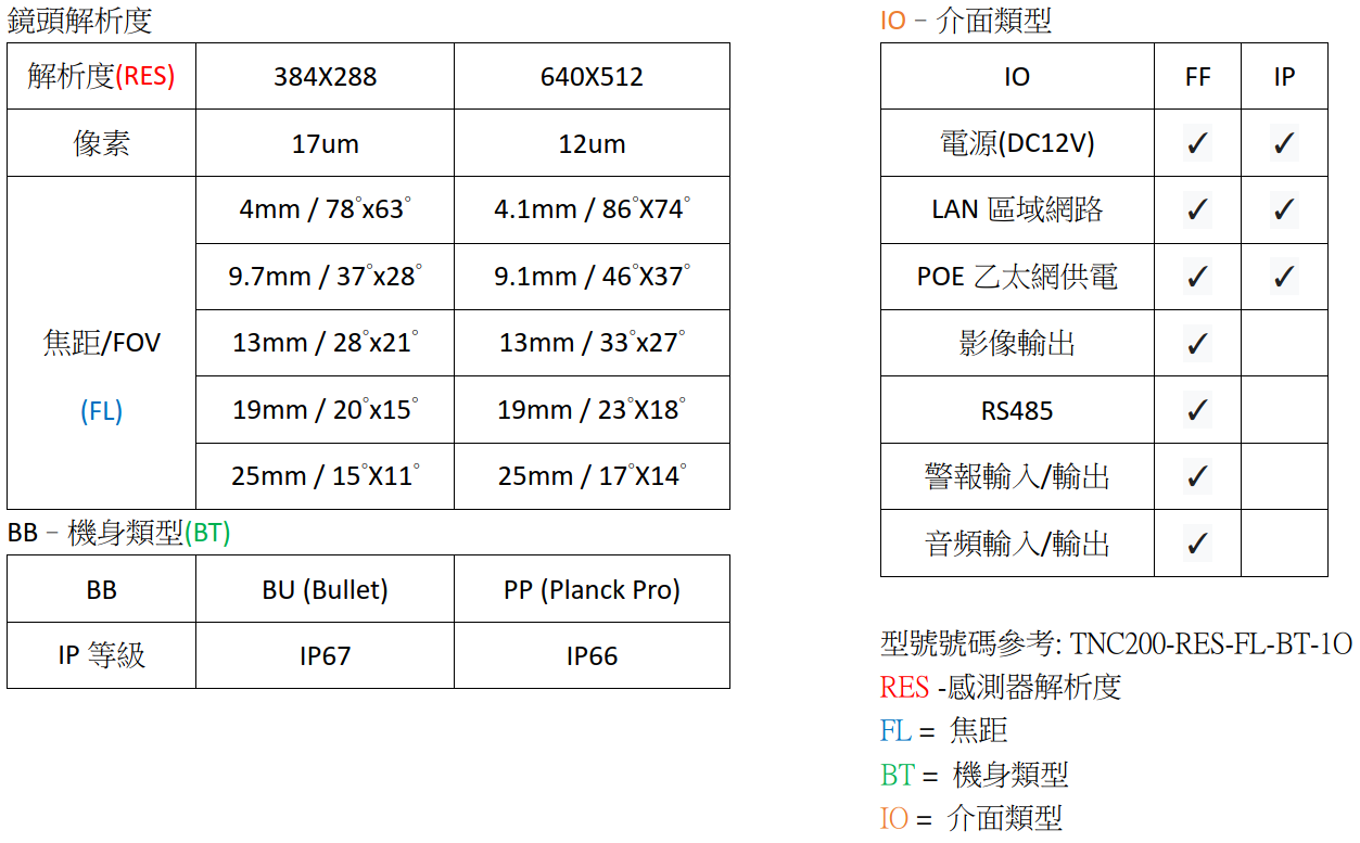 Industrial Product TNC10 &TNC200 Comparison Industral Model Product name TNC200 TNC10 Industral Model Product name TNC200 TNC10 Industral Model Product name TNC200 TNC10 TNC200 Resolution/Optics Table鏡頭解析度分類表
